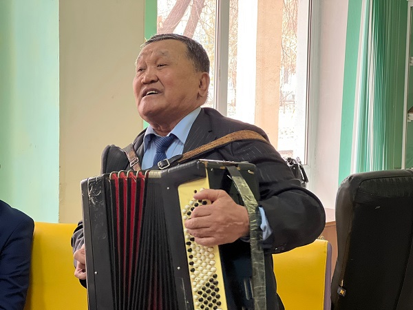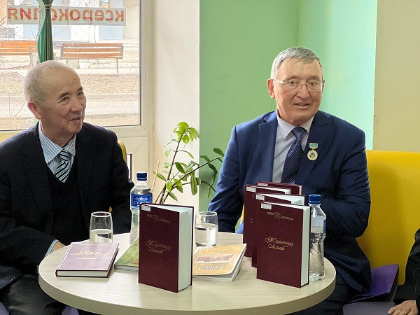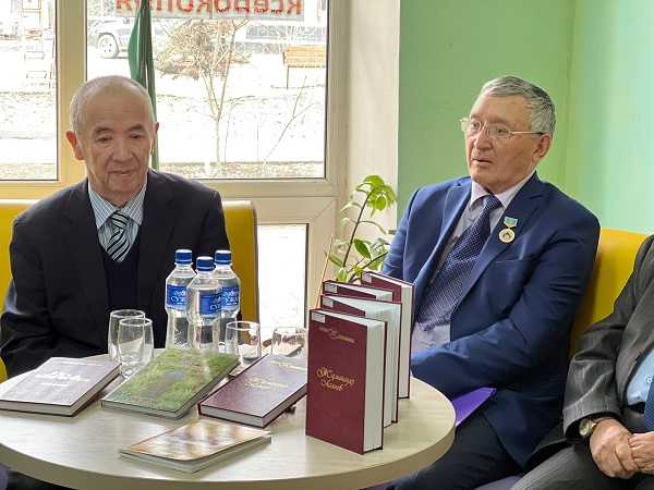 Гости меропрятия - доктор филологических наук Асанов Жубаназар и друг поэта певец, музыкант, почетный учитель Сатыбаев Мукан.