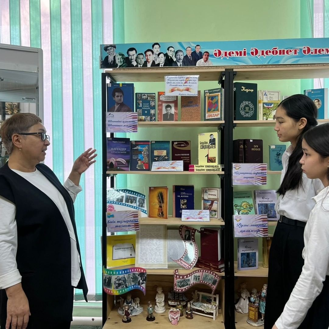 Был проведен библиографический обзор по книжной выставке «Кісіліктің биік шыңы», раскрывающий жизнь и творчество писателя.