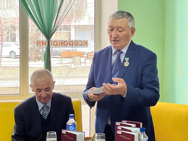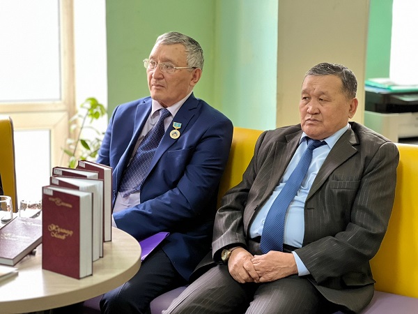 Гости меропрятия - доктор филологических наук Асанов Жубаназар и друг поэта певец, музыкант, почетный учитель Сатыбаев Мукан.